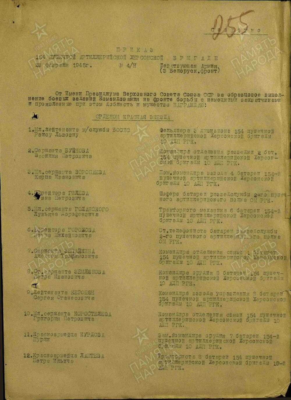 Воропаев Карп Иванович внесен в списки участников Великой Отечественной войны Вознесенского сельского Совета, списки находятся в архиве краеведческой комнаты Вознесенской детской библиотеки МКУК "ЦКД ст.Вознесенской" Вознесенского сельского поселения Лабинского района