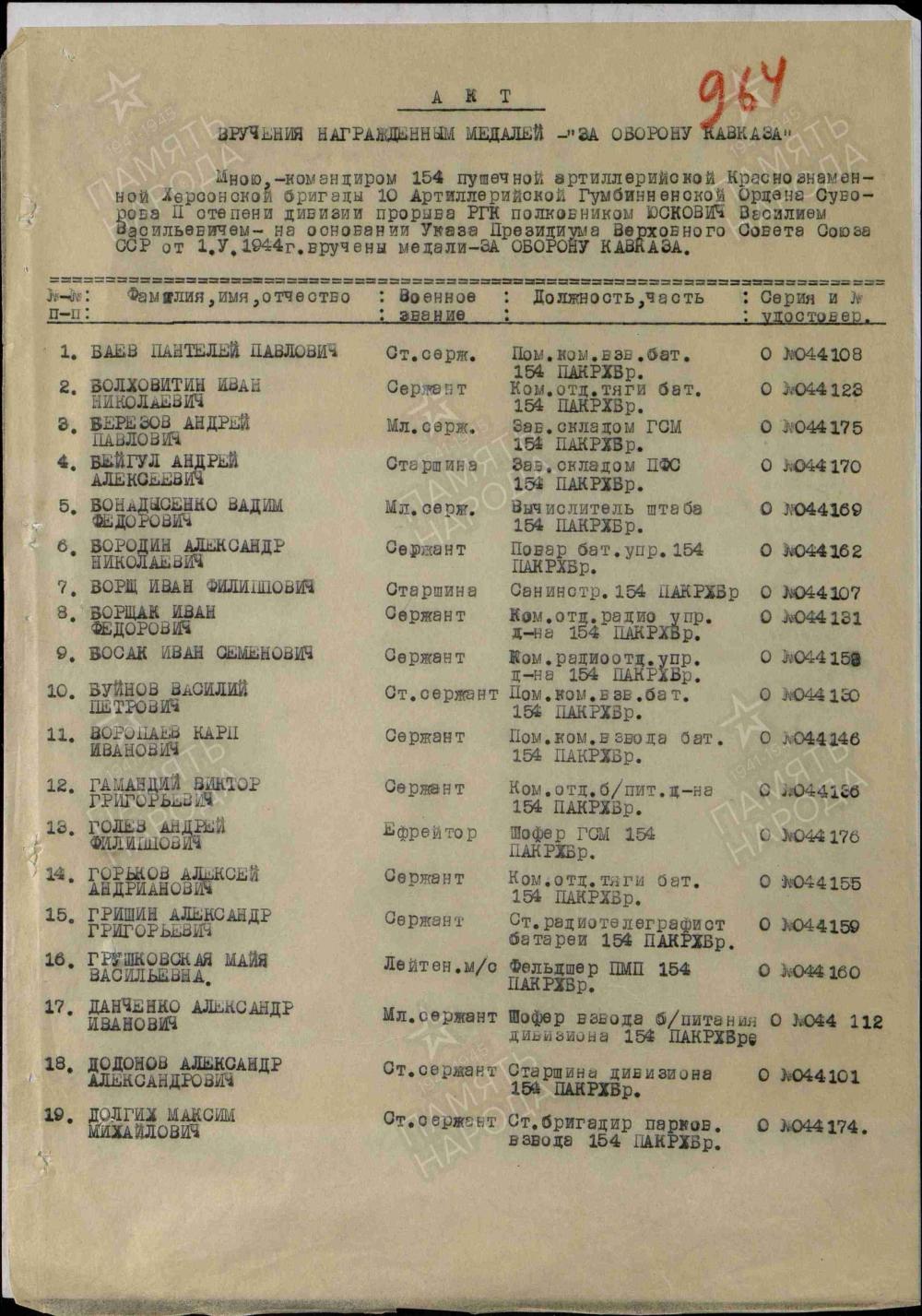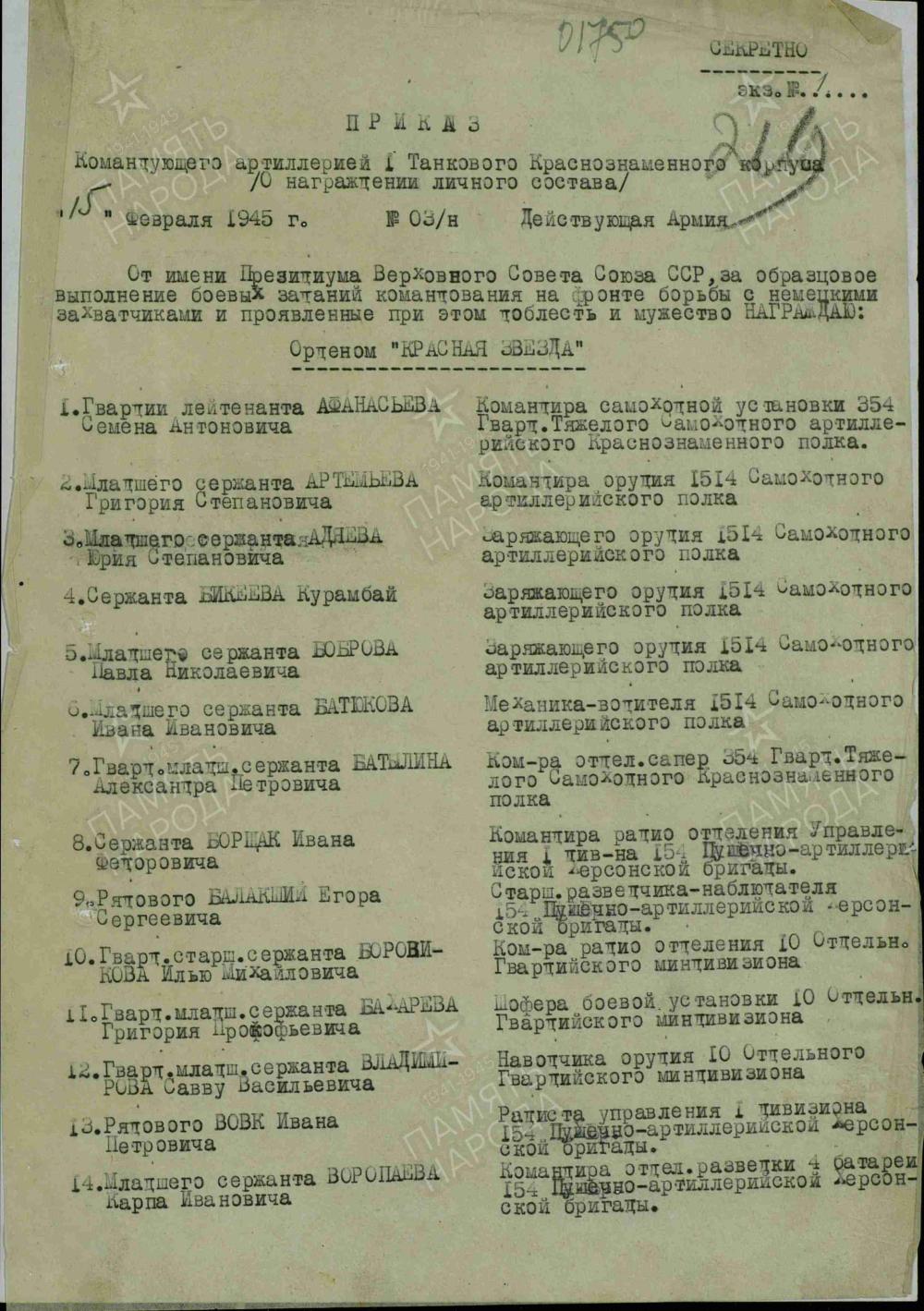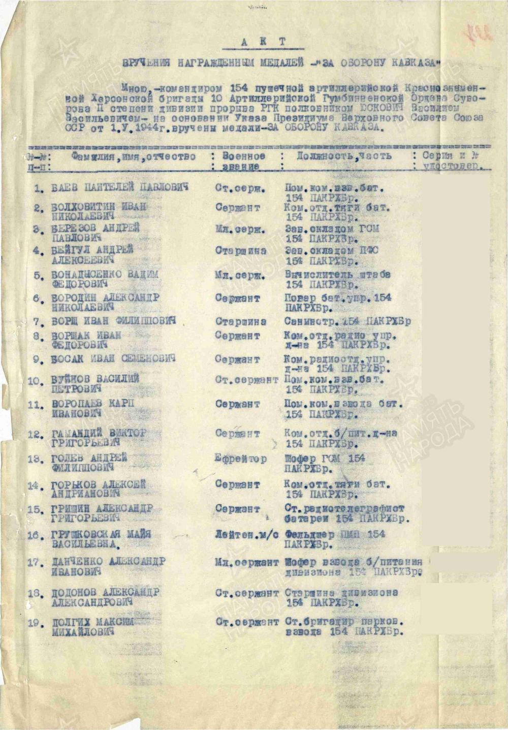 орден Краснеой Звезды от 23.02.1945 Медаль за отвагу от 30.06.1944 2 медали За оборону кавказа от 13.06.1945 от 13.06.1946 Орден Отечественной войны 2 степени от 06.05.1987г.