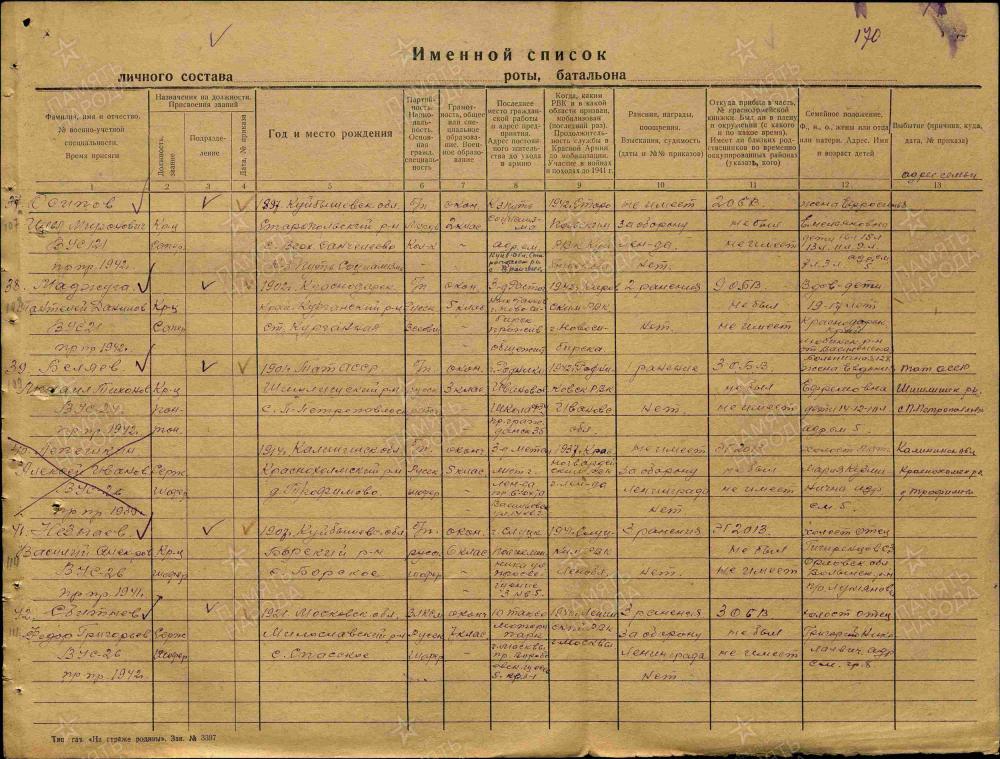 Сайт «ПАМЯТЬ НАРОДА» данные присутствуют. Сайт ОБД «Мемориал» данные отсутствуют.