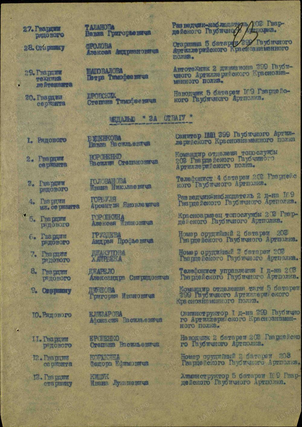 Галерея "Дорога Памяти" Вороненко Василий Степанович сержант|гв. ст. сержант|гв. сержант|ст. сержант Награды Орден Отечественной войны II степени|Медаль «За отвагу»|Орден Красной Звезды Место рождения Дальневосточный край, Благовещенский р-н, с. Дикановка Дата призыва 05.10.1938 Место службы 203 гв. гап 2 гв. габр|203 гв. гап 3 гв. А