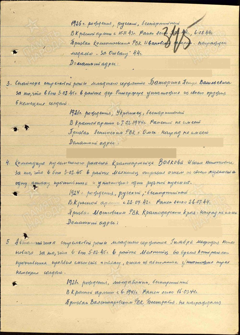 26.07.1944 года был тяжело ранен, находился на лечении в госпитале.