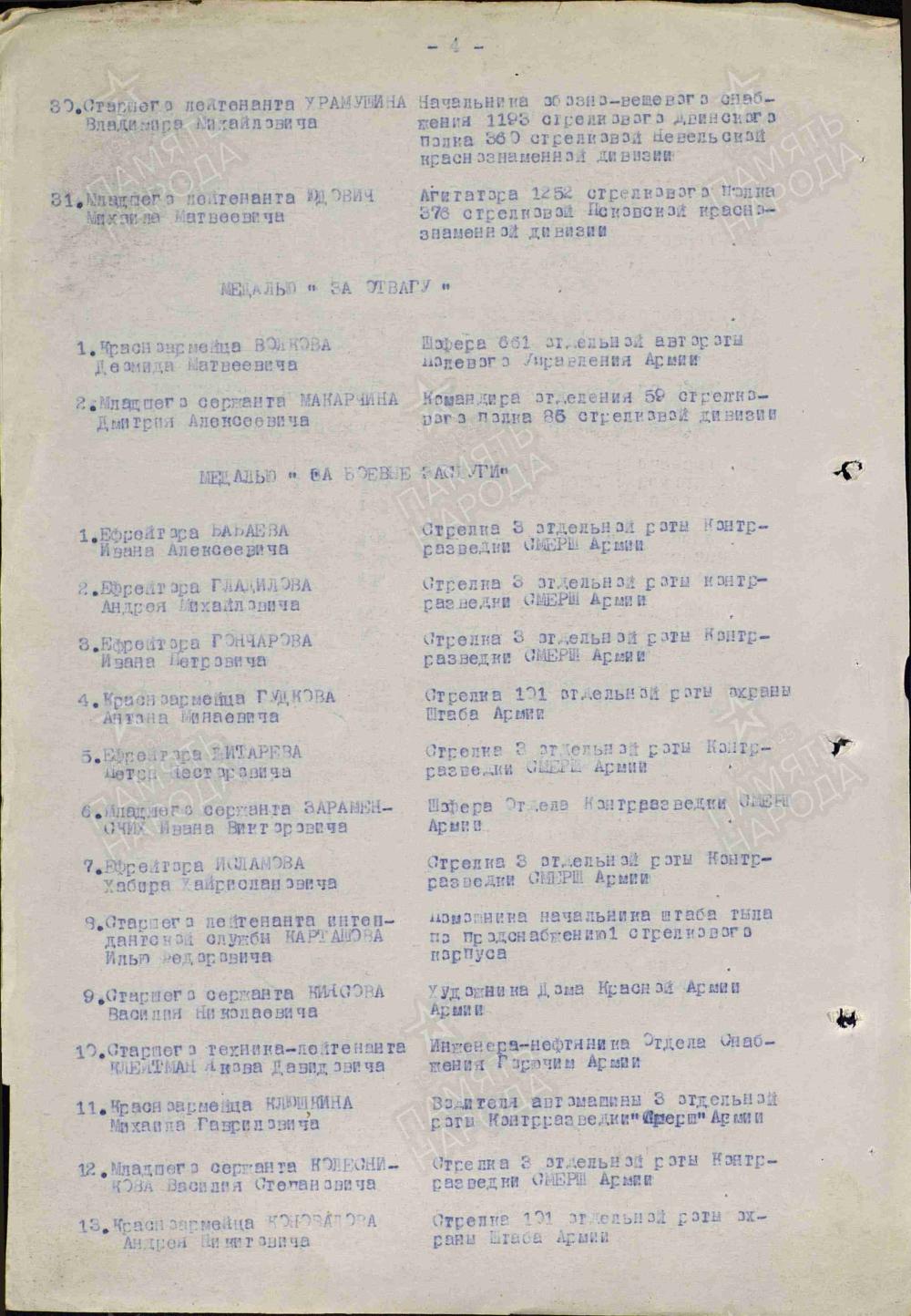 Медаль «За боевые заслуги», «За оборону Москвы», «За победу над Германией в Великой Отечественной войне 1941-1945гг.»
