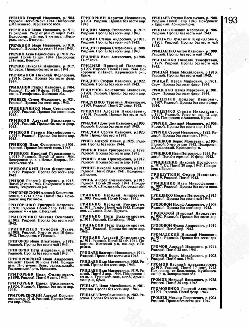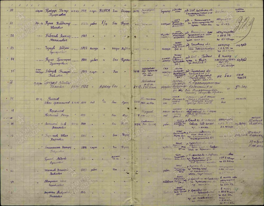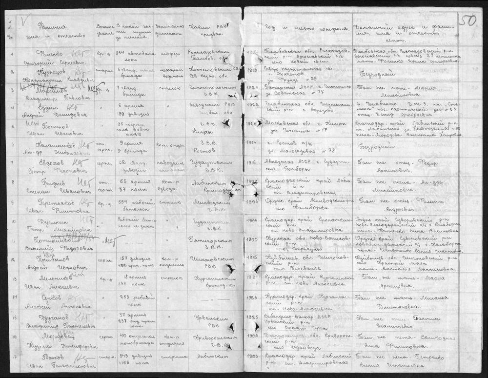 Родился в 1922г. В станице Владимирской, воспитывался в детском доме. Окончил 4 класса. Комсомолец. 15.02.1943 года призвался в ряды Красной Армии Лабинским РВК. Служил в 37 артиллерийском полку, 535 стрелковом полку. Попал в марте 1943г в плен, был освобожден. Пропал без вести в мае 1943 года.