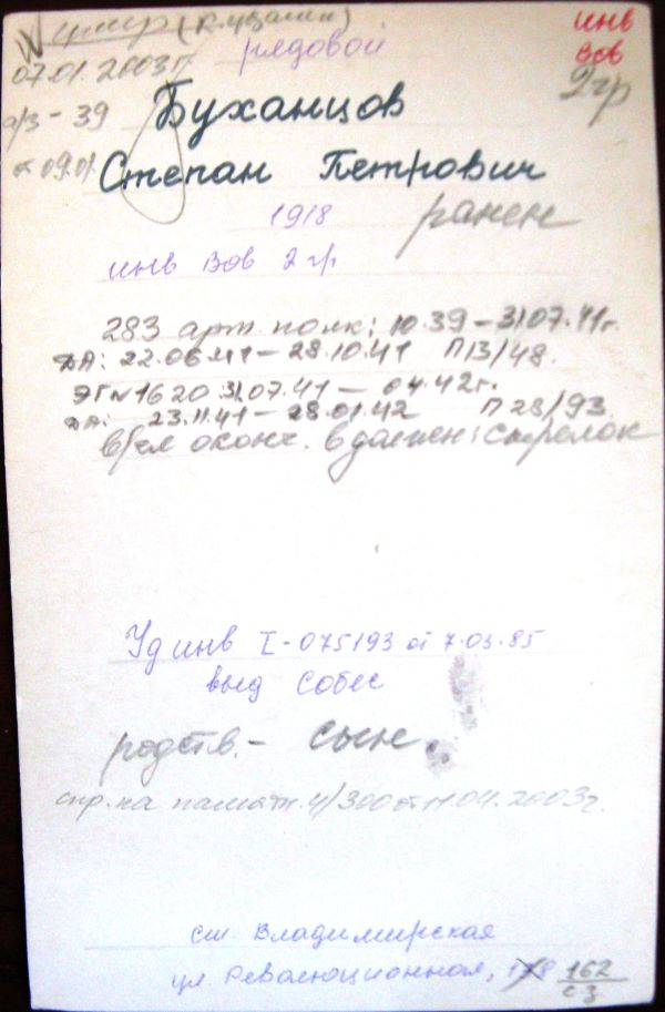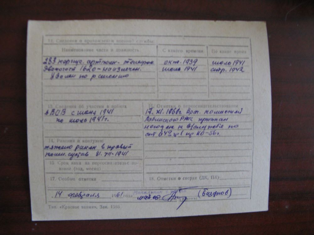 Родился 7 ноября 1918г в станице Владимирской. Там же окончил 7 классов. В октябре 1939 году был призван в Красную Армию Лабинским РВК и направлен в 283-й артиллерийский полк. 31 июля 1941 года получил ранение в ногу. Проходил лечение в эвакуационном госпитале №1620. В январе 1942-го был демобилизован из Вооруженных сил по ранению. Вернувшись в родную станицу работал в колхозе «Путь Ильича». Умер 7 января 2003 года.