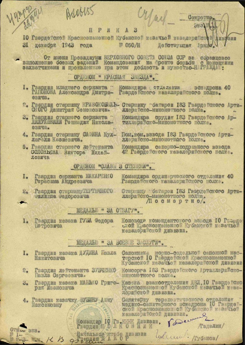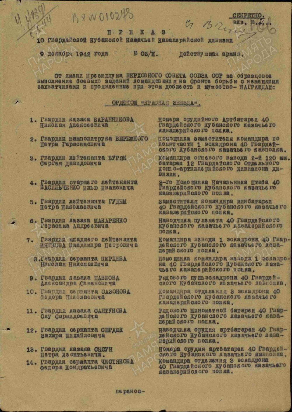 Родился в 1893году в станице Владимирской. Беспартийный. Казак. Воевал с немцами в первую мировую. В октябре 1941 году добровольцем вступил в Красную Армию и пополнил ряды 29-го Кубанского казачьего кавалерийского полка. В рядах этого соединения участвовал в обороне Кубани и Адыгеи, в знаменитой Кущевской атаке, Северо-Кавказском фронте. После преобразования 29-го кавалерийского полка в 40-й гвардейский Кубанский казачий кавалерийский полк. Был переброшен через Закавказье на Грозненское направление. Затем в Нагайские степи. Довелось Герасиму даже спасать полковое Боевое знамя в Крыму. Герасим прошел фронтовыми дорогами от Кубани до Вислы, где был тяжело ранен. Победу лихой воин встретил дома. Умер фронтовик от ран в 1946 году.