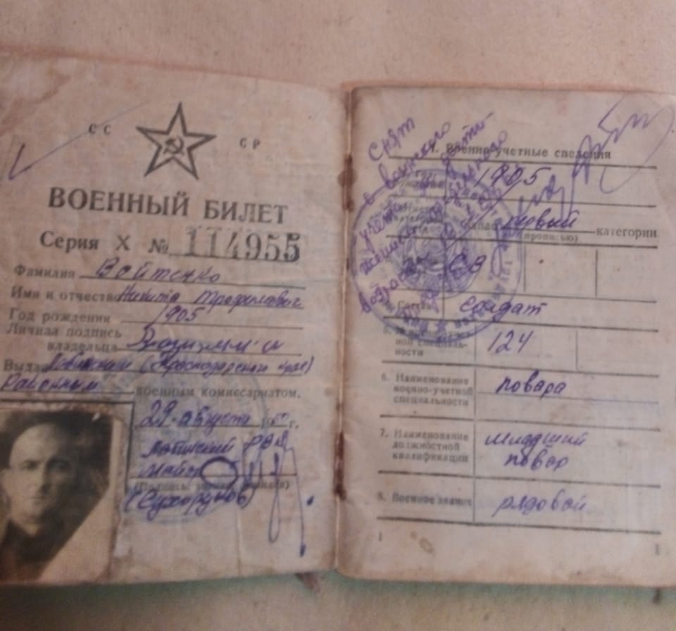 Родился 17 июля 1905 году в станице Владимирской. Призывался в ряды Красной Армии в 1942 году Лабинским РВК.. Служил в 55-м стрелковом полку -поваром,(на Черноморском флоте на Севастопольком оборонительном рубеже). Пропал без вести 3 июля 1942г под Севастополем. Попал в плен в июле 1942года, освободили 5 марта 1945года. Вернулся в станицу, приступил к мирному труду. Умер 31 декабря 1979 году.