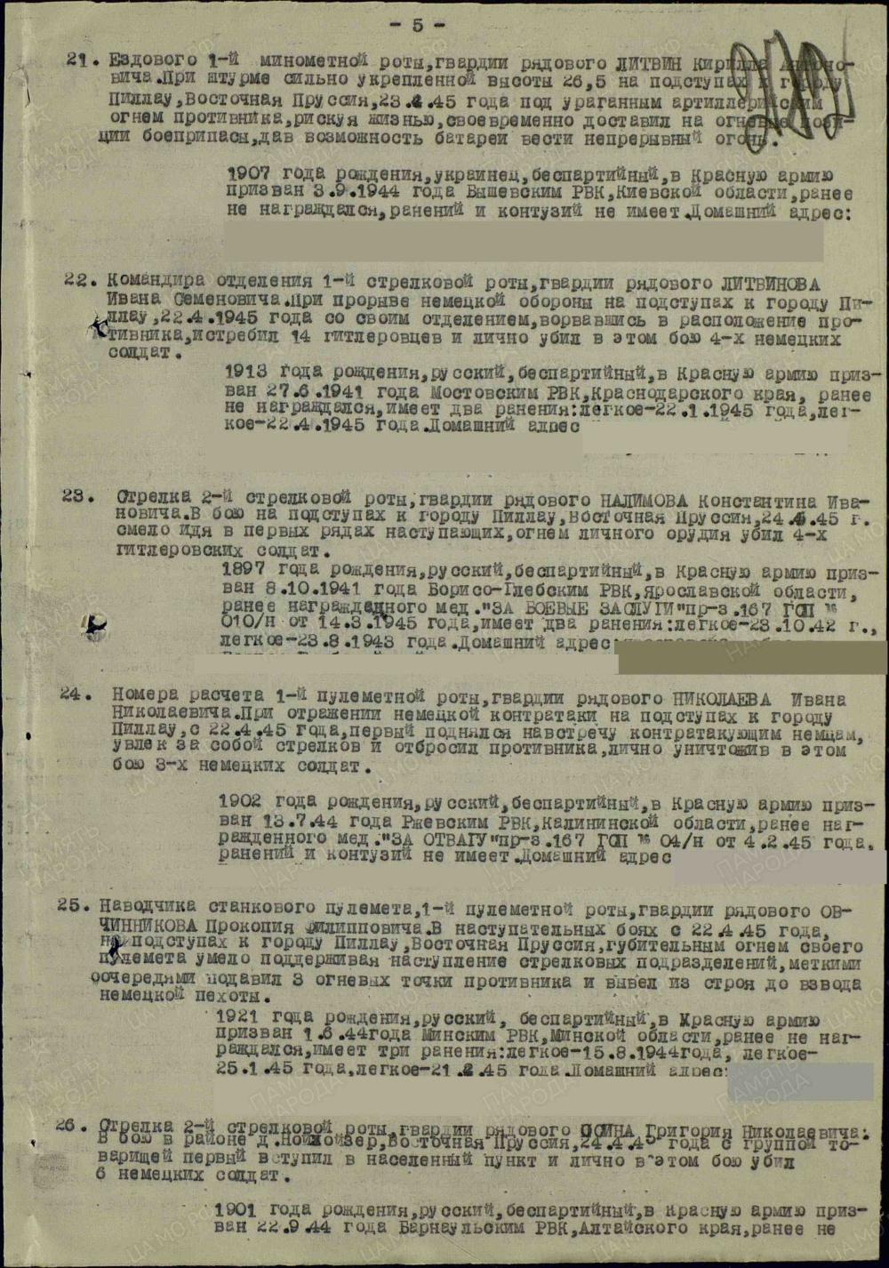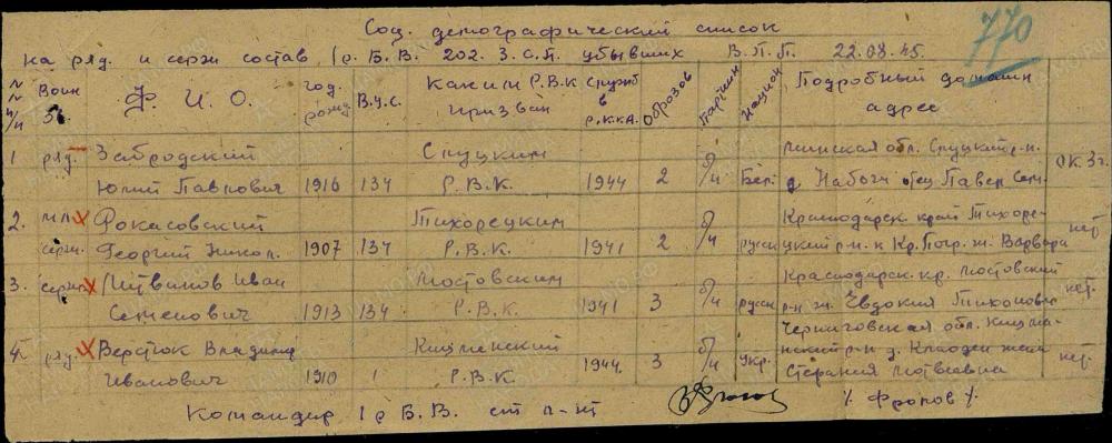 Дата поступления на службу: 27.06.1941. Призван Мостовским РВК Краснодарского кр. Мостовского р-на.