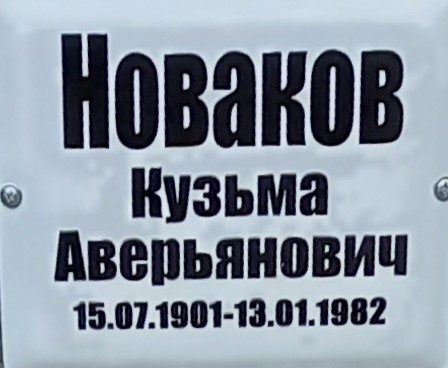 Родился в 1901 году в станице Упорной. Участник Гражданской войны с 1918 по 1924 год - 1-я Конная армия Буденного. 1 августа 1941 года он был призван Спокойненским райвоенкоматом в Красную Армию и определен в 22 кавалерийский полк 5 кавалерийской дивизии. Вместе с однополчанами Кузьма Аверьянович участвовал в Сталинградской битве, освобождал Донбасс и Смоленск. В декабре 1943 г. в бою под с. Ермочки Сиротинского р-на Витебской обл. под сильным минометным и пулеметным огнем поставлял боеприпасы на огневую позицию своего эскадрона и был ранен. Награжден медалью «За боевые заслуги». В боях в Восточной Пруссии 20 марта 1945 г. кавалерист 4 эскадрона гвардии ефрейтор Новаков К.А. в числе первых ворвался в с. Вордель, уничтожил 6 солдат противника, увлекая за собой остальных бойцов взвода. Награжден медалью «За отвагу». 1 мая в бою за д. Цюлен показал себя смелым и мужественным воином, истребил 6 немецких солдат и пленил 2 офицеров. Был ранен. Награжден орденом Красной Звезды. День Победы гвардеец-кавалерист встретил на реке Эльбе. После войны Кузьма Аверьянович жил и работал в родной станице. Был похоронен на станичном кладбище в 1982 г. Имя Кузьмы Аверьяновича Новакова внесено в Книгу Памяти "Фронтовики" О ветеранах Краснодарского края - участниках Великой Отечественной войны 1941-1945 гг., вернувшихся домой с Победой. г. Лабинск, Лабинский район".