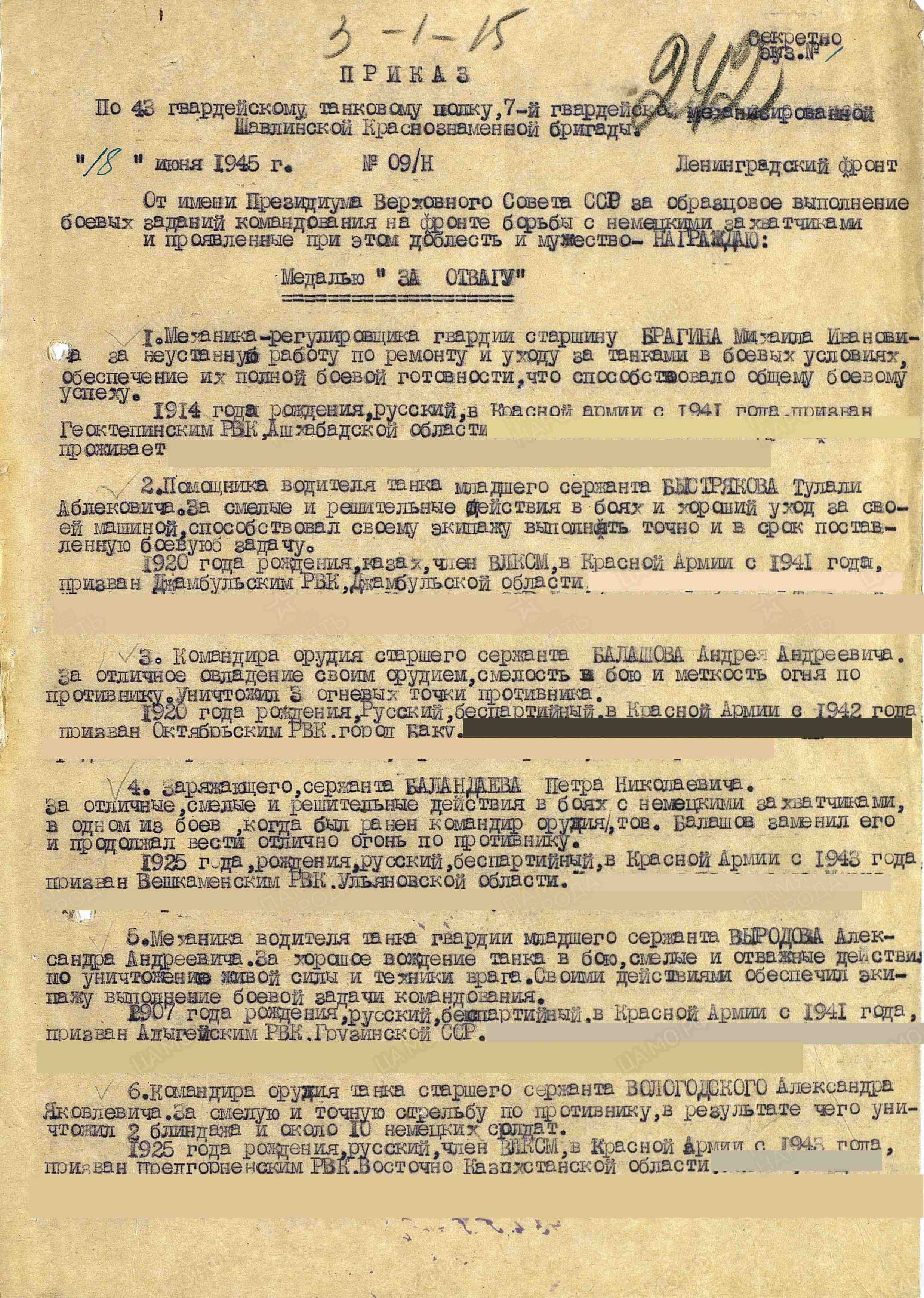 Выродов А.А. родился в станице Чамлыкской в 1907 г. На фронт призван в 1941 году. Гвардии сержант, механик - водитель танка. Награжден медалью "За отвагу", орденом Красного Знамени.