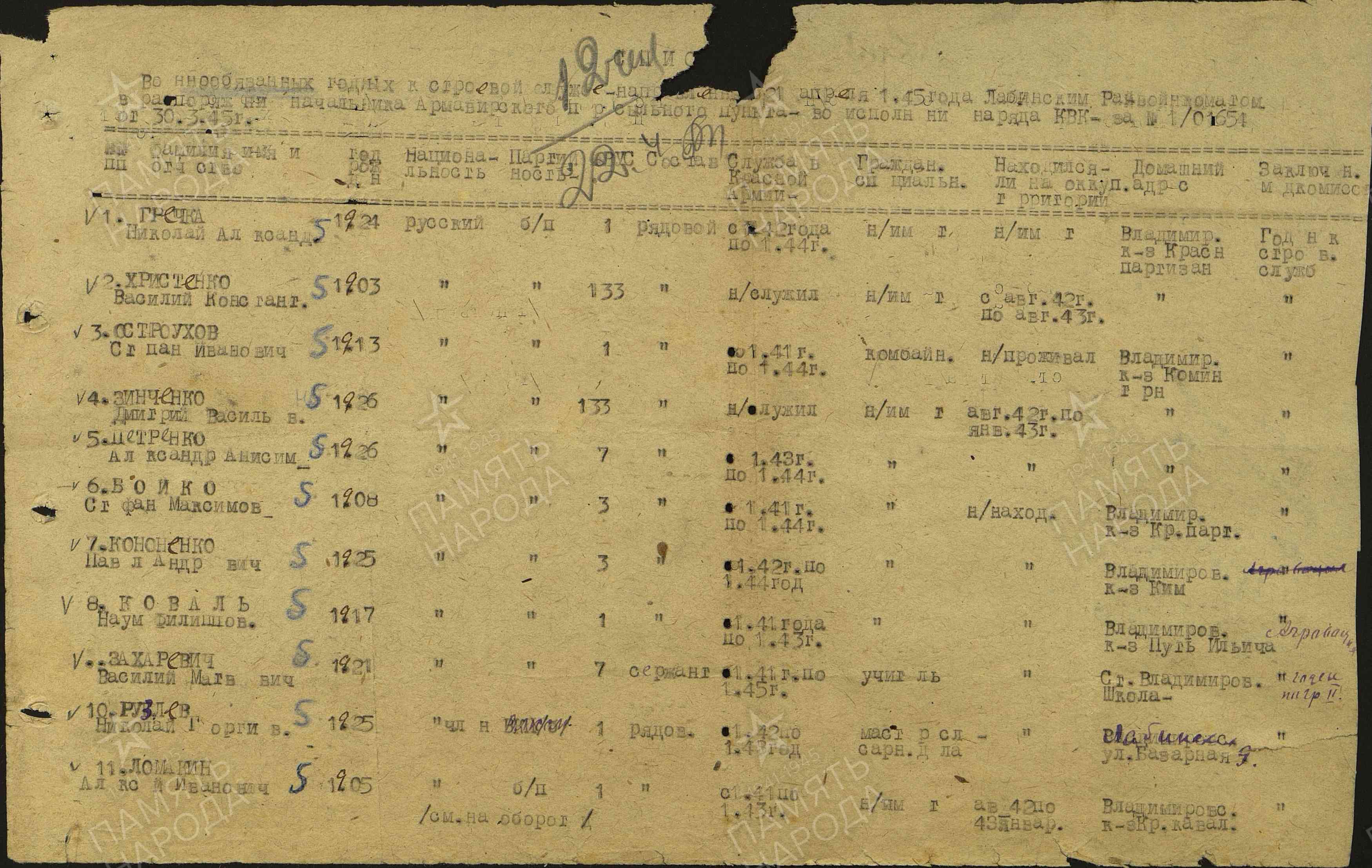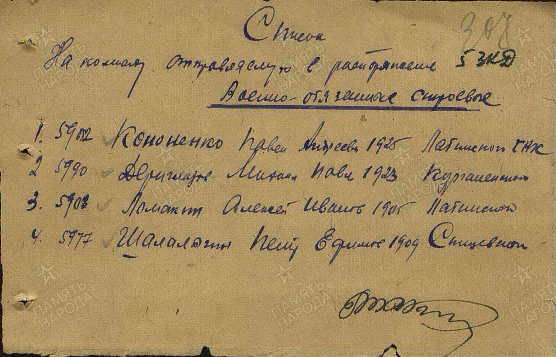 Ломакин Алексей Иванович родился в 1905 году Краснодарский край, Лабинский р-н, ст. Владимировская. В ряды Красной Армии призывался Лабинским РВК, Краснодарский край, Лабинский район в 1942 году. Армавирский военно-пересыльный пункт, Краснодарский край, г. Армавир Лабинский РВК. Воевал в составе в/ч 16041, 53 зкд, отдельный батальон связи, 307 стрелковый полк. Воинское звание: рядовой ; сержант военнообязанный ; красноармеец. Дата выбытия: 22 июня 1943 года был ранен и находился Госпиталь: ЭГ 5416. Призывался повторно 21 апреля 1945 года. Был в плену (освобожден). Дальнейшая судьба не известна.