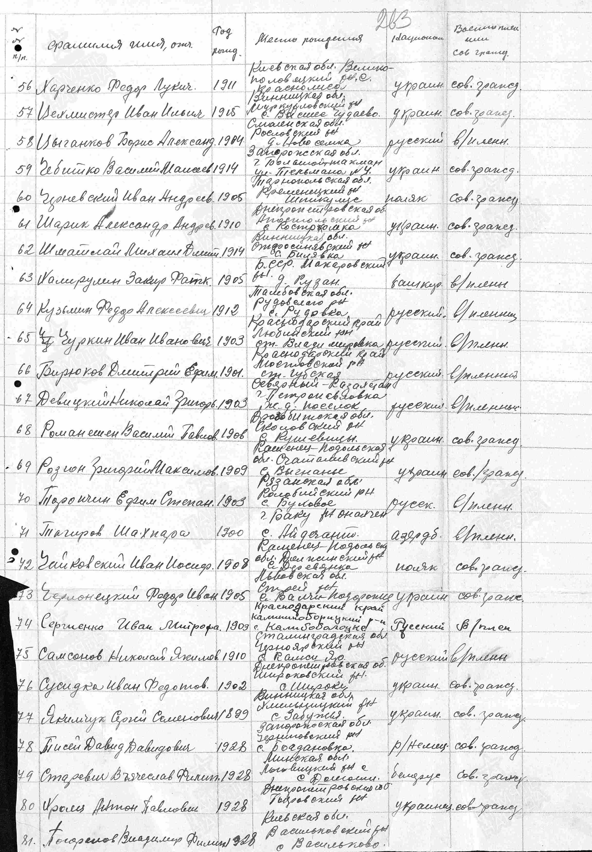 Чуркин Иван Иванович родился 21 апреля 1903 года Краснодарский край, Лабинский р-н, ст. Владимирская. В ряды Красной Армии призывался Мостовским РВК, Краснодарский край, Мостовский район. Воинское звание: рядовой Воинская часть: 46 запасной стрелковый полк 15 запасной стрелковой бригады 773 артиллерийский полк. Был в плену( освобожден). Поле мобилизации вернулся в родную станицу. Умер Иван Иванович 29 января 1975 году.