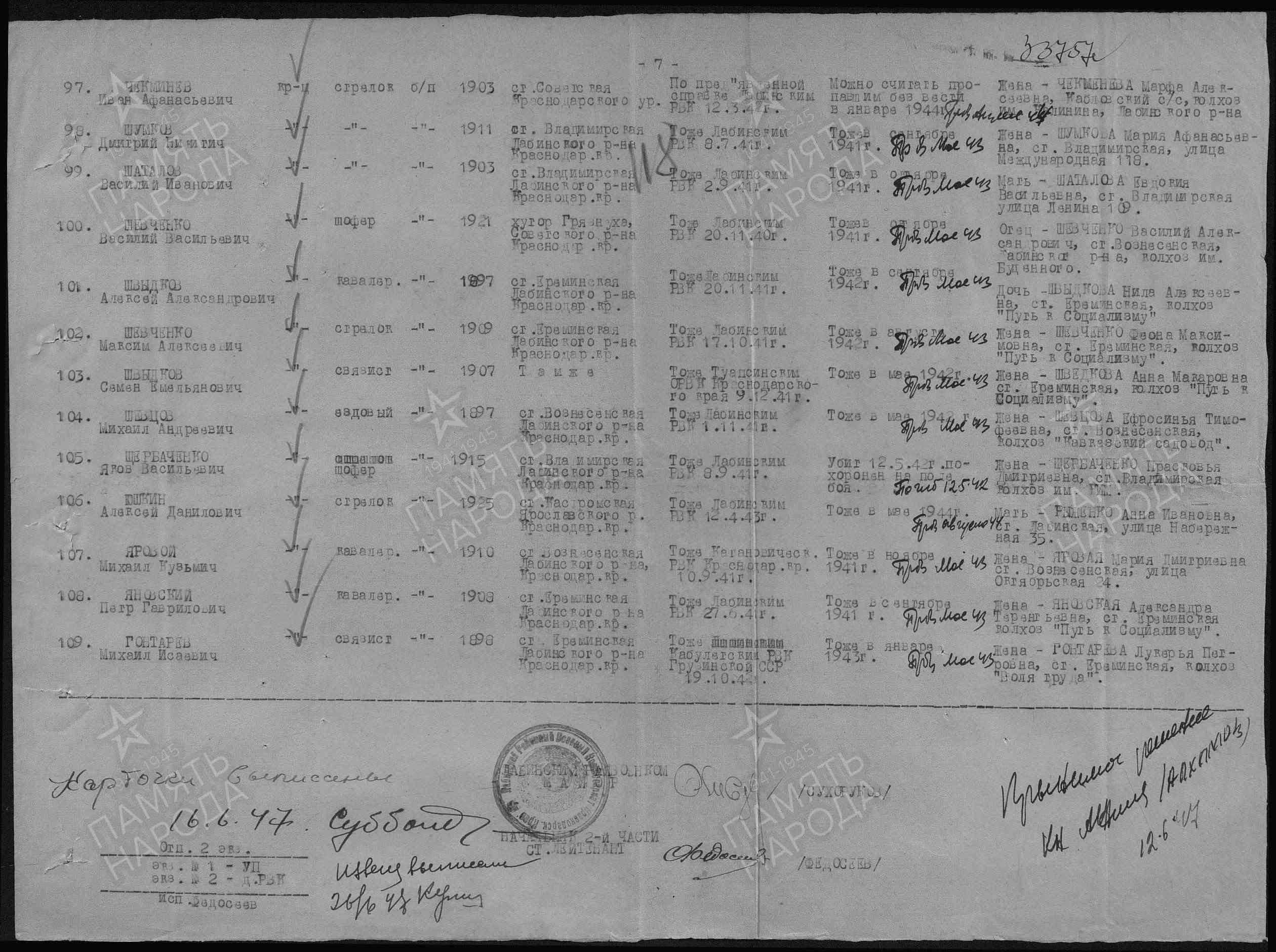 Щербаченко Яков Васильевич родился в 1915 (1903) году Краснодарский край, Лабинский р-н, ст. Владимирская. В ряды Красной Армии призывался 8 сентября 1941 года Лабинским РВК, Краснодарский край, Лабинский район. Воинское звание: красноармеец, шофер. Яков Алексеевич погиб 12 мая 1942 года.