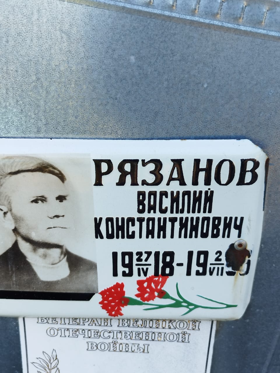 Рязанов Василий Константинович родился 28 апреля 1918 года Краснодарский край Лабинский район ст. Владимирская. В ряды Красной Армии призывался Ярославским РВК, Краснодарский край, Ярославский р-н. Воинское звание: сержант. Последнее место службы: 430 отдельный саперный батальон. 30 октября 1941 года получил ранение и был отправлен в ЭГ 58. 8 февраля 1942 года был эвакуирован в тыл ЭГ 1360. Умер Василий Константинович 2 июля 1986 году.